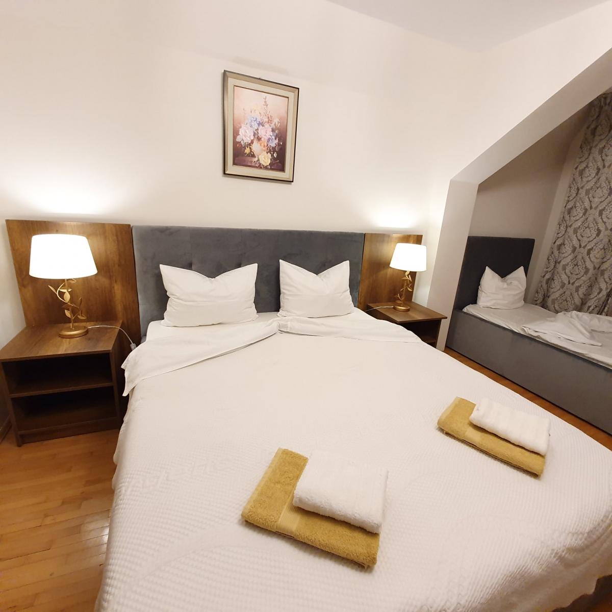 O camera dedicata unei familii care vine la Sanmartin-Oradea pentru relaxare si pentru a se bucura de ce ofera zona. Cu un birou elegant poate fi destinata si pentru calatorii de afaceri,delegatii sau innrtuniri cu partenrii de business.